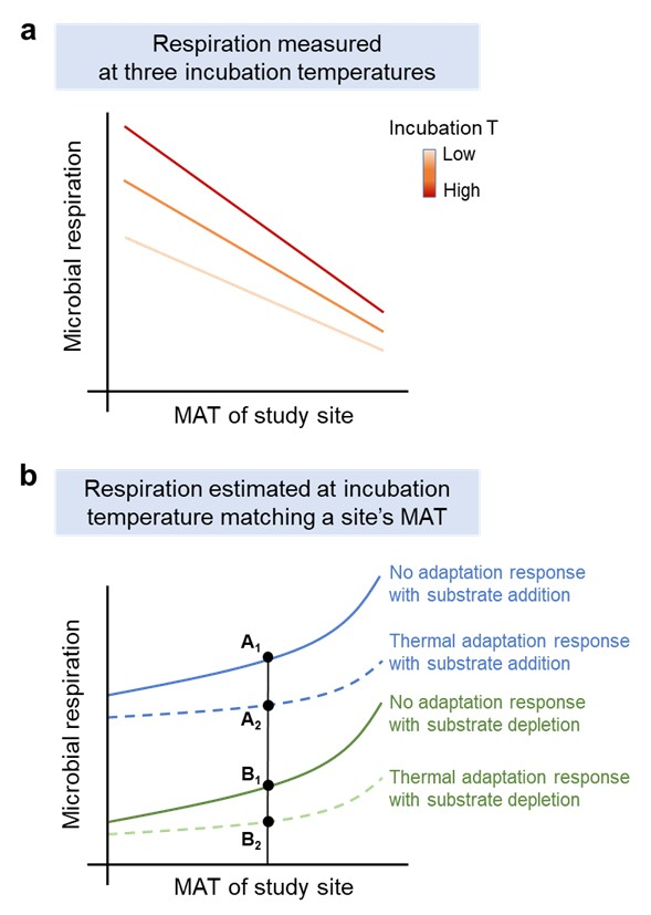 土壤微生物呼吸是陆地生态系统碳循环的重要组成部分,温度是影响微生物呼吸的主要因素。以往研究发现,土壤微生物呼吸会随着温度升高呈现先增加而后降至原水平的变化趋势,其中微生物补偿性热适应和土壤底物限制...2024-02-18
