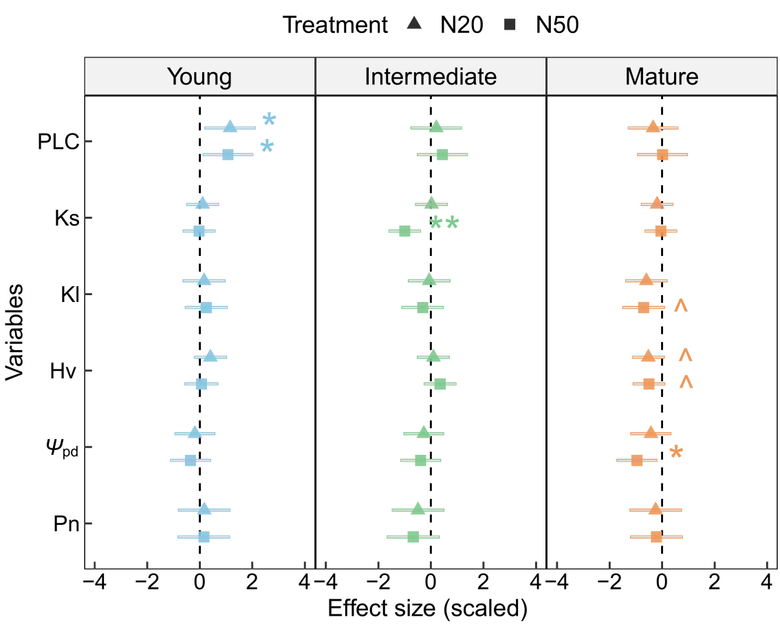 研究通过不同林龄(幼龄林、中龄林和成熟林)的华北落叶松人工林长期氮添加控制实验(2010年至今),系统解析了长期氮添加对不同林龄树木非结构性碳代谢与水...