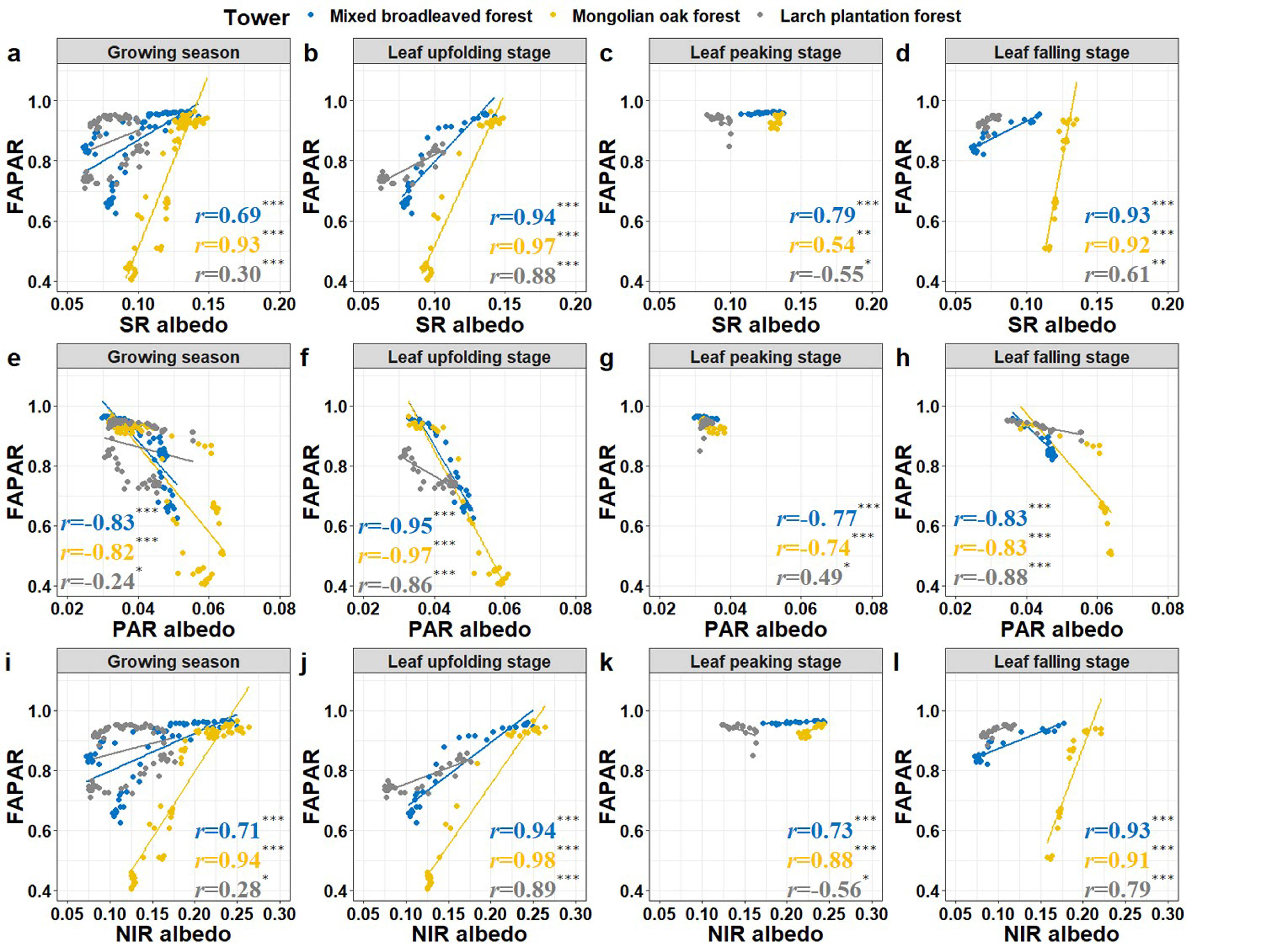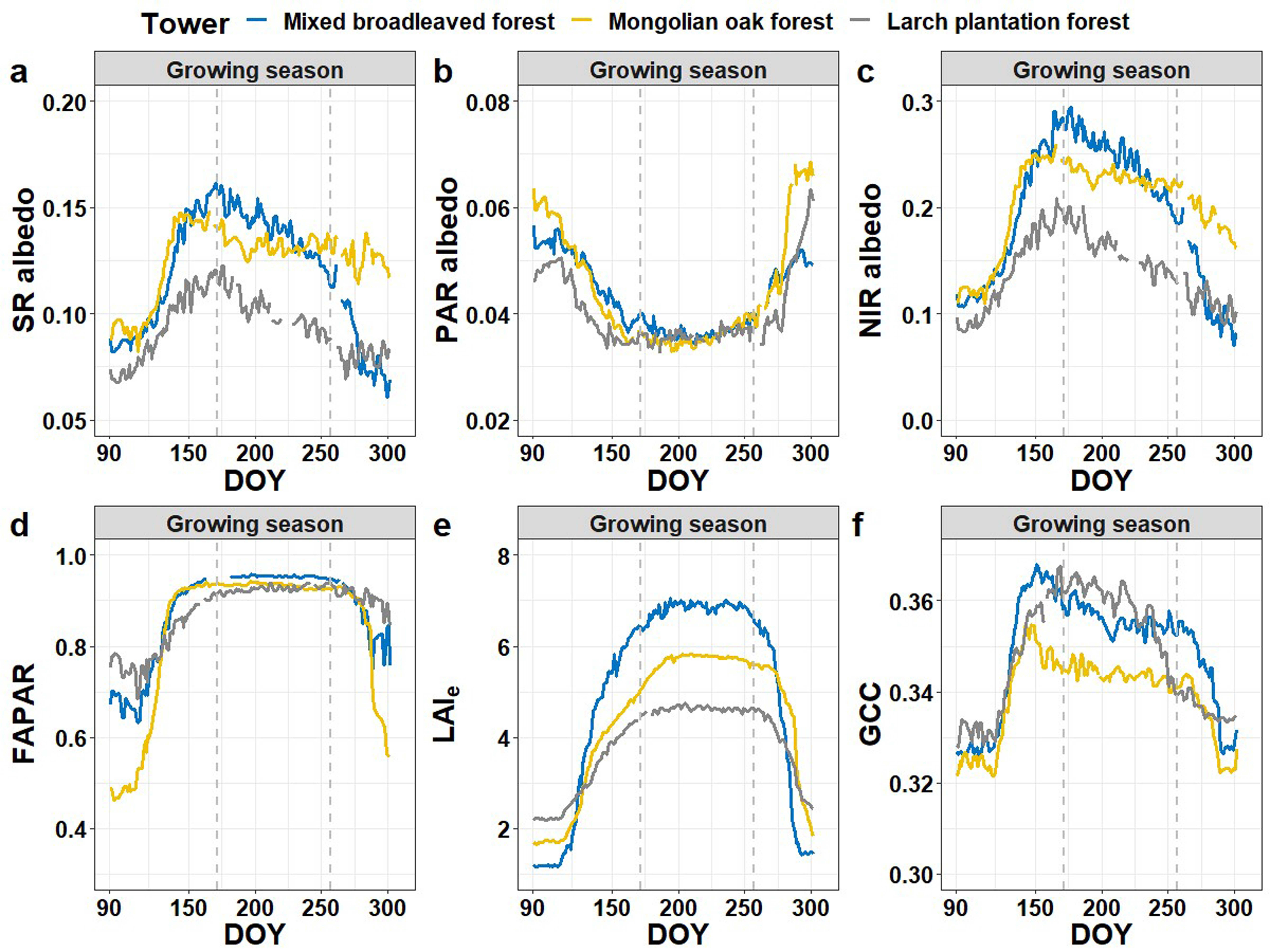 Li S., Yan Q., Liu Z., Wang X., Yu F., Teng D., Sun Y., Lu D., Zhang J., Gao T., and Zhu J. 2023. Seasonality of albedo and fraction of absorbed photosynthetically active radiation in the temperate secondary forest ecosystem: A comprehensive observation using Qingyuan Ker towers. Agricultural and Forest Meteorology, 333: 109418.