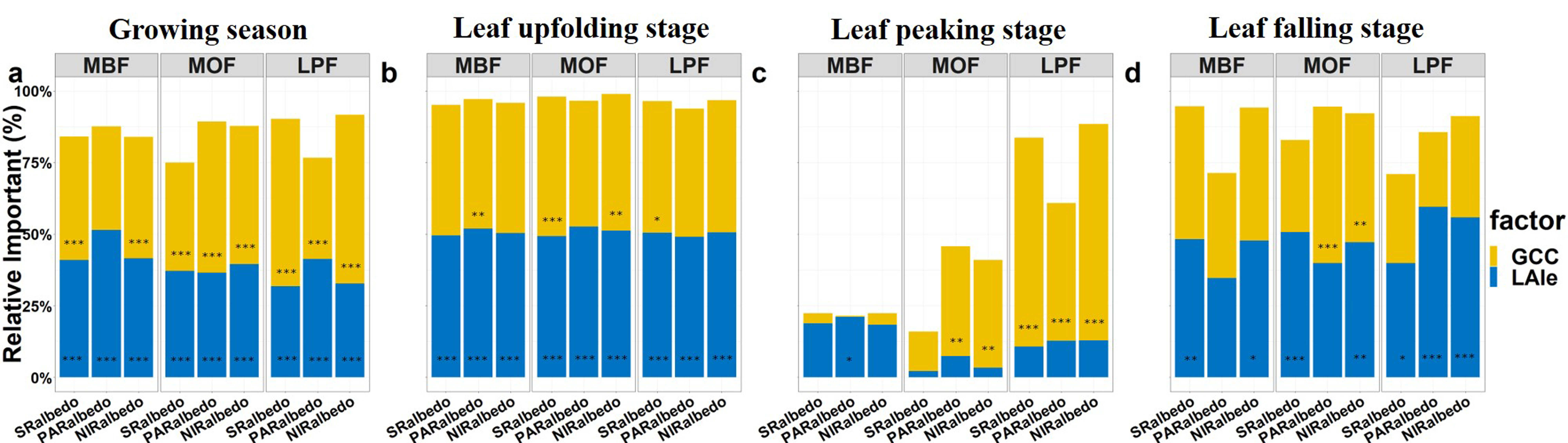 森林冠层叶面积指数和冠下绿度对反照率的相对贡献