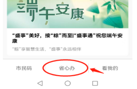 2.打开“盛事通”APP,实名登陆后,点击“首页”页面下端的“省心办”。