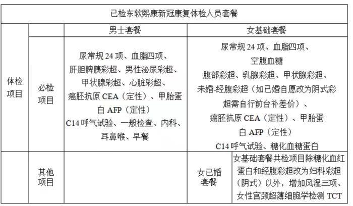 3、此前已参加东软熙康健康体检中心新冠康复体检套餐的职工,按照协议约定本次体检单位须继续选择东软熙康健康体检中心,体检项目见已检东软熙康新冠康复体检人员套餐。