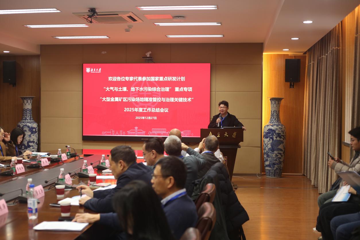 2025年12月27日上午,由中国科学院沈阳应用生态研究所作为牵头承担单位,贾永锋研究员主持的“十四五”国家重点研发计划“大气与土壤、地下水污染综合治理”重点专项“大型金属矿区污染场地精准管控与治理关键技术”(编号:2024YFC3712600,以下简称项目)2025年度工作总结会议在南京大学仙林校区成功召开。项目跟踪专家,矿冶科技集团有限公司周连碧教授级高级工程师、中国科学院地理科学与资源研究所陈同斌研究员,项目咨询专家,华南理工大学党志教授、西南科技大学董发勤教授、北京大学朱东强教授、贵州大学吴攀教授、南开大学张彤教授、南京大学吴剑锋教授、南京大学李伟强教授等参加会议。项目各课题负责人及研究骨干等40余人出席会议。