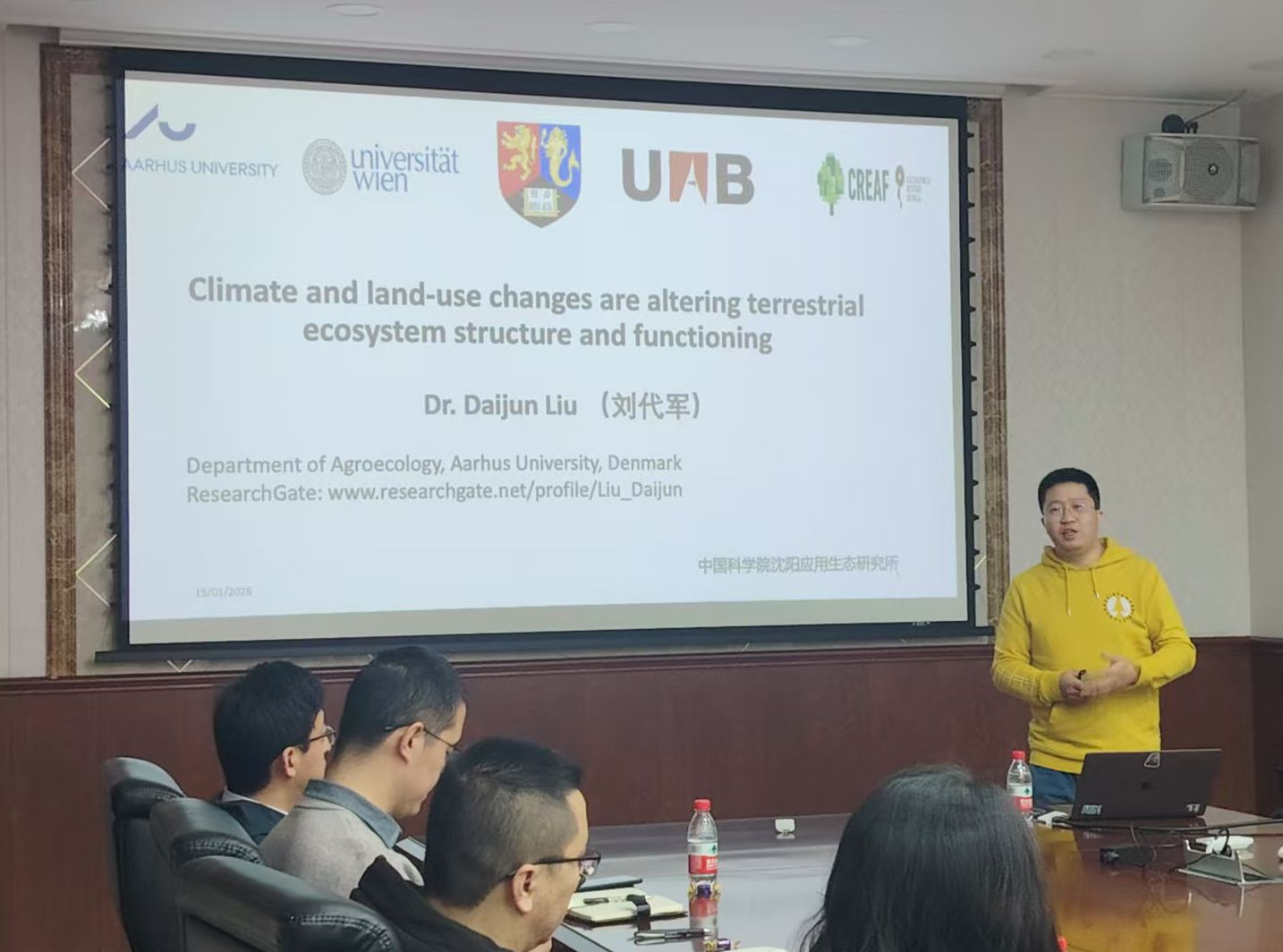 2026年1月15日,森林生态与保育重点实验室邀请丹麦奥胡斯大学农业与生态学院学术人员(Academic employee)刘代军研究员进行学术报告。刘代军研究员主要结合野外气候变化模拟实验、生态模型以及大数据分析方法,系统解析气候变化与土地利用变化对陆地生态系统(森林、灌木和草原)中物种多样性、群落结构及生态系统生产力等功能的影响。本次学术报告共有40余名师生参加。