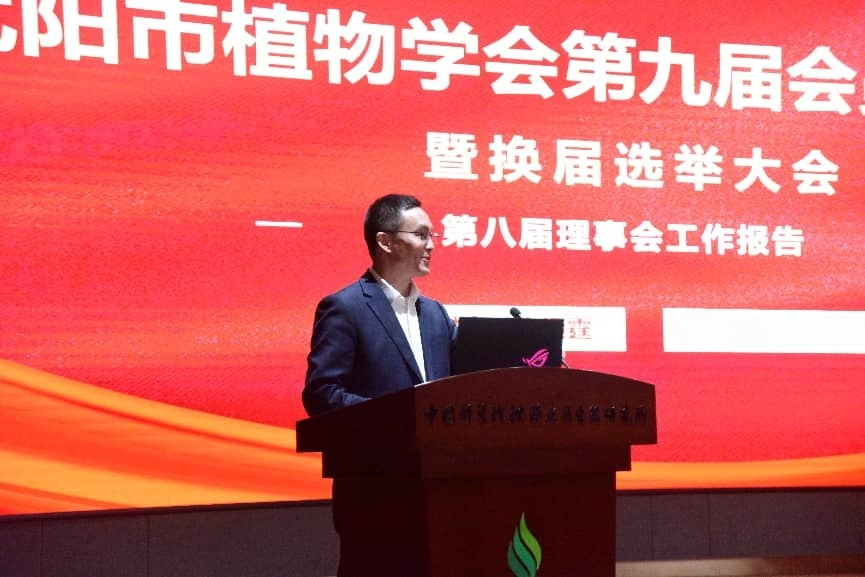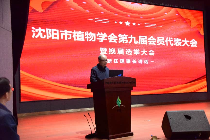 第九届理事会理事长于景华研究员代表理事会发表讲话。他首先感谢全体会员的信任与支持,并向上一届理事会和挂靠单位沈阳生态所表示衷心感谢。于景华指出,未来学会将重点围绕丰富学术活动与科普教育,深入中小学开展“植物科普进校园”活动,提升青少年对植物科学的兴趣和生态保护意识;同时深化与副理事长单位沈阳市植物园的合作,联合开展植物展览、自然教育课程研发、公众科普活动等,打造特色科普品牌。他还强调,要践行防沙治沙理念,结合辽宁省西北部风沙区生态治理需求,组织学会力量开展抗性植物选育与推广,为科尔沁沙地歼灭战提供科技支撑;并依托学会植物分类与引种驯化领域的专家力量,积极推动沈阳国家植物园创建工作,推动迁地保护、科学研究、科普展示等方面提档升级。于景华理事长表示,新一届理事会将团结带领全市植物学相关领域的科技工作者,锐意进取,开拓创新,为建设美丽沈阳、美丽辽宁贡献植物学教育、科研工作者的智慧和力量。