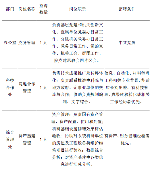 中国科学院沈阳分院是中国科学院的派出机构,负责联络和协调中国科学院在辽宁省和山东省的研究所。本着“按需设岗、公开招聘、竞争上岗、择优聘用”的原则,按照《事业单位人事管理条例》《中国科学院人员聘用制度实施办法》、《中科院沈阳分院人员聘用制度实施办法》等要求,招聘管理岗位工作人员,具体信息如下: