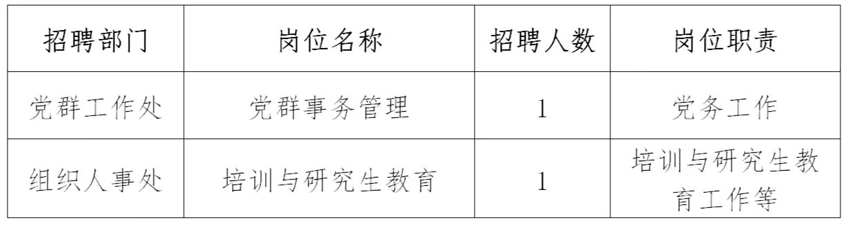 3.竞聘党群工作处人员,有党务工作经验者优先;竞聘组织人事处人员,有培训工作、研究生教育工作经验者优先。
