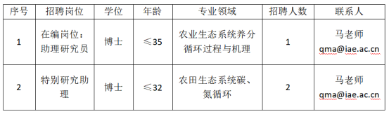 2、具有农业生态学、土壤生态学或土壤学等相关专业博士学位,年龄在35岁以下,身体健康;