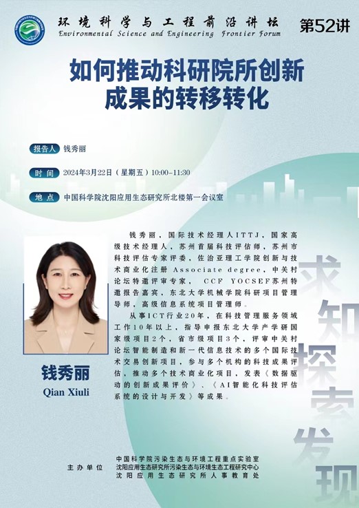 2024-03-21主讲人:钱秀丽时间:2024年3月22日(星期五),10:00-11:30地点:中国科学院沈阳应用生态研究所北楼第一会议室主讲人:钱秀丽时间:2024年3月22日(星期五),10:00-11:30地点:中国科学院沈阳应用生态研究所北楼第一会议室