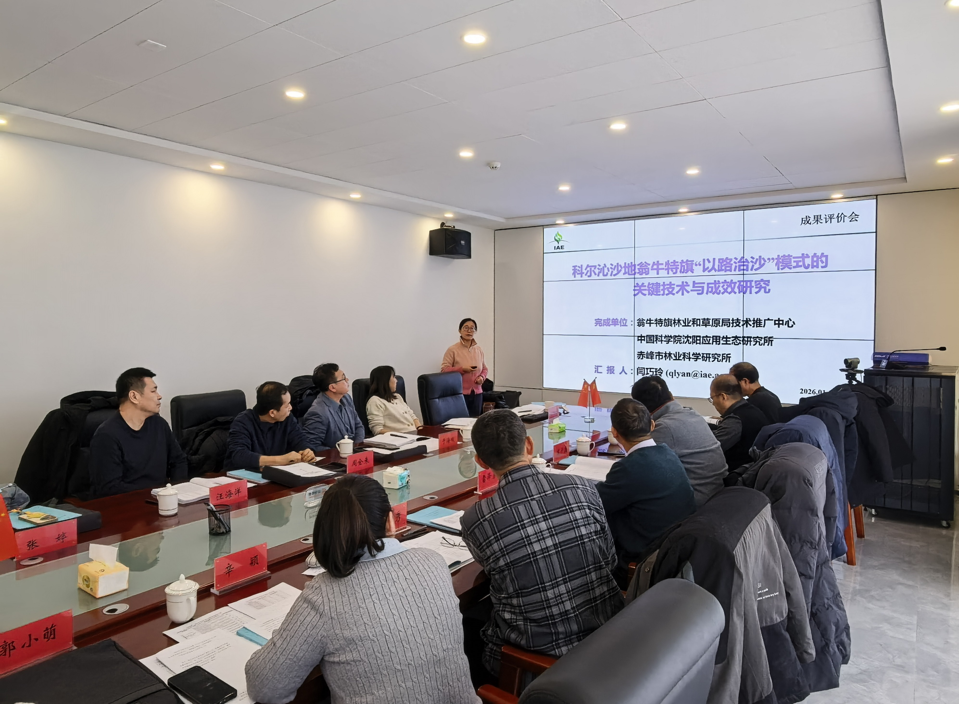 2026年1月15日,由翁牛特旗森林草原技术推广中心、中国科学院沈阳应用生态研究所、赤峰市林业科学研究所共同完成的“科尔沁沙地‘以路治沙’模式技术体系研发与应用”科技成果顺利通过专家评价。成果评价会在内蒙古自治区赤峰市林业科学研究所召开。会议邀请北京林业大学高广磊教授、辽宁工程技术大学雷泽勇教授、内蒙古自治区林业和草原监测规划院杨勇院长、赤峰市林业种苗站丁明秀正高级工程师、内蒙古旭天会计师事务有限公司张彦会计师作为评审专家。成果完成单位中国科学院沈阳应用生态研究所乌兰敖都荒漠化防治生态试验站(简称:乌兰敖都站)闫巧玲站长、周全来副站长,赤峰市林业科学研究所于海蛟所长、伊梅副书记、赵鸥研究员,翁牛特旗森林草原技术推广中心汪海洋高级工程师,以及其他骨干成员等20余人参加会议。